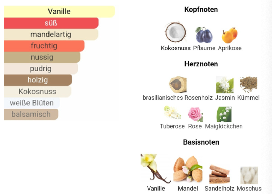 - Base note: Almond, Musk, Sandalwood, Vanilla